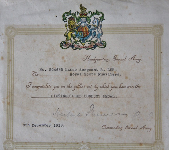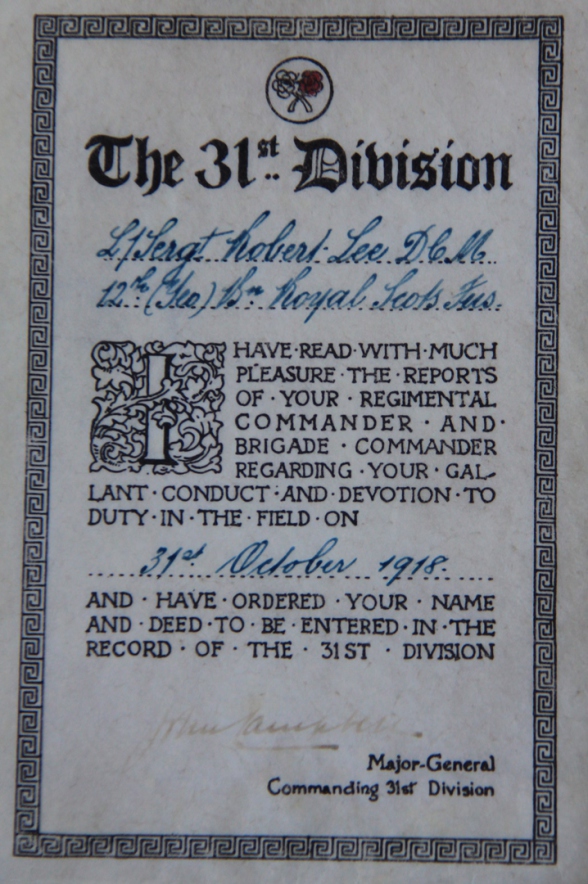 ROBERT THOMSON LEE, D.C.M., Sergeant 50463, 12th Bn Royal Scots Fusiliers.