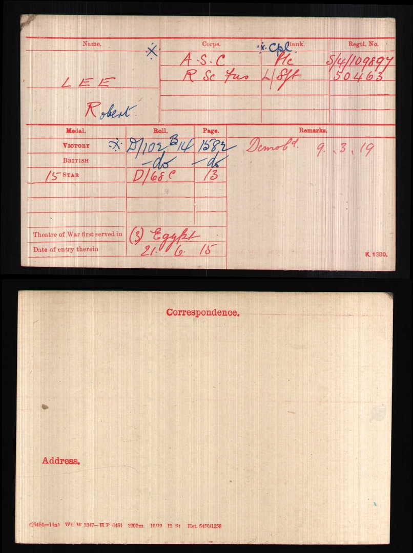 Robert Lee, DCM, served in Egypt before being transferred to France.