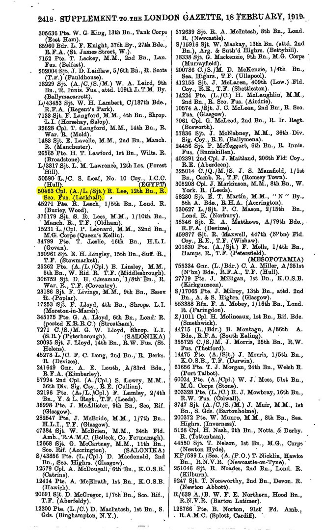 50463 Cpl (A/LSgt) R. LEE, 12th Bn R. Sco. Fus. (Larkhall).