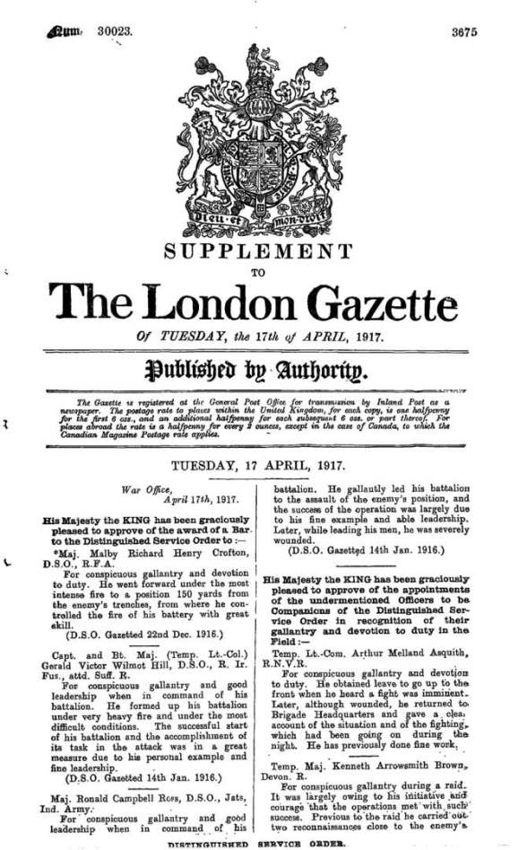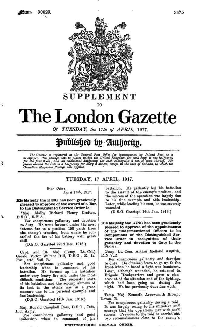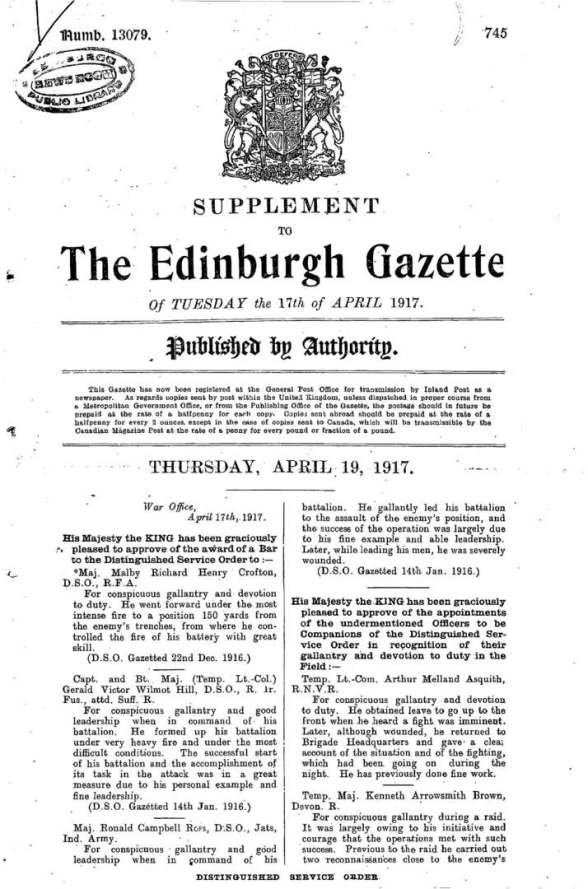 The Edinburgh Gazette No 13079 of 17 April, 1917.