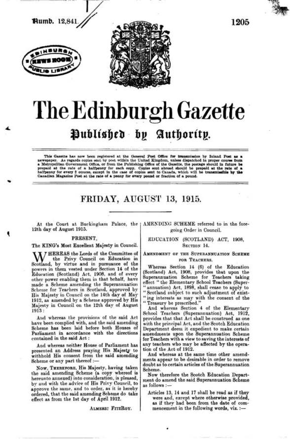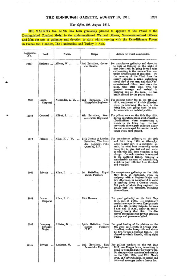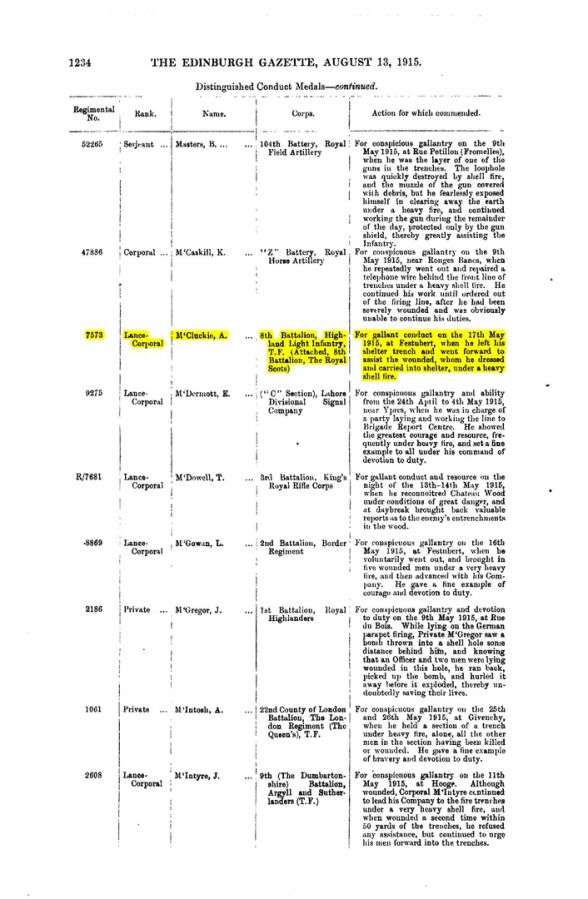 The Edinburgh Gazette No 12841 of 13th August, 1915, page No 1234.