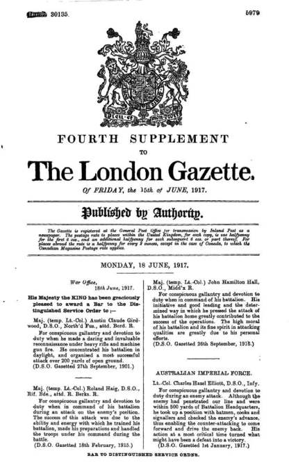 The above posting is repeated in The Edinburgh Gazette No 13105 of 19 June, 1917, page No 1211.