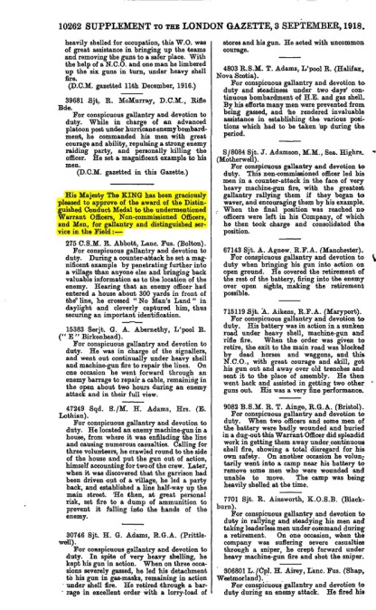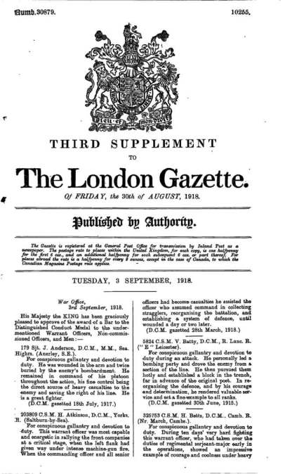 The London Gazette No 30879 of 30 August, 1918, page No 10359, shows: