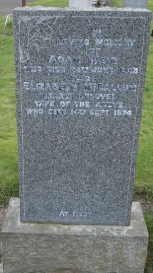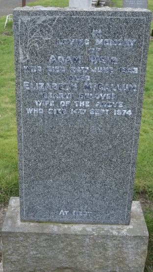 On 6th May, 1902, his paternal grandfather Adam Weir, age 69, widower of Marion Anderson, died at 53 Miller Street, Larkhall. The cause of death was Bronchitis and Senility.