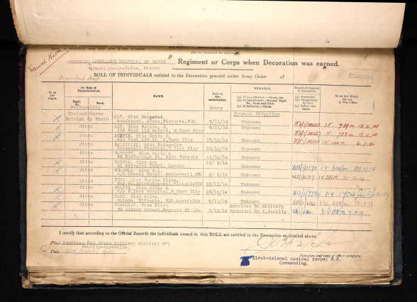 Medal Roll for the award of The 1914 Star Medal by The American Ambulance Hospital of Paris, Neuilly-sur-Seine, France.