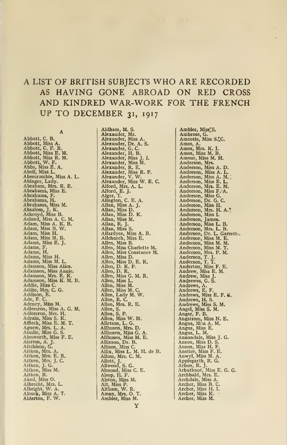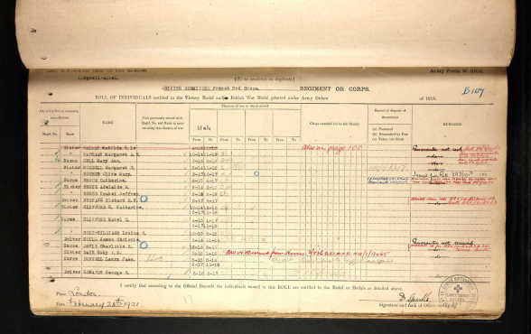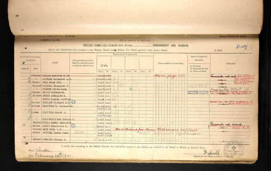 Medal Roll for the award of The Victory Medal and The British War Medal by the British Committee French Red Cross.