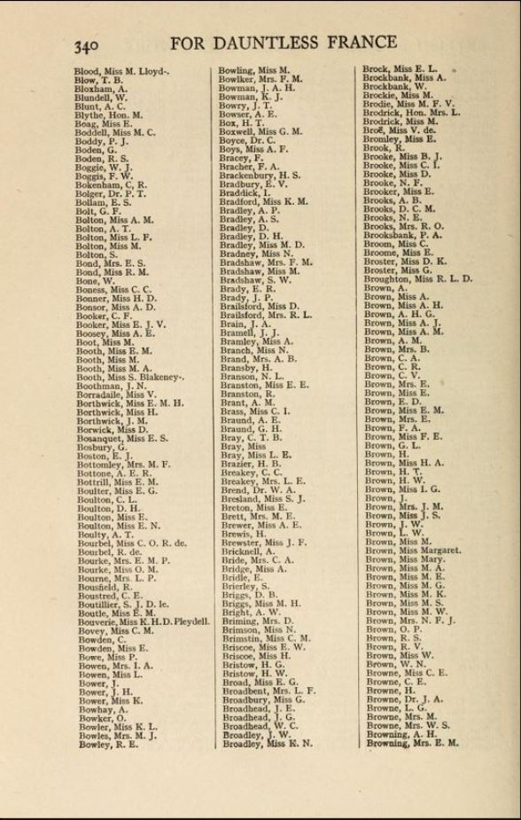 In 'For Dauntless France', an account of Britain's aid to the French wounded and victims of the war; by Laurence Binyon, (1869-1943), Publication date 1918, page 340 lists "Boddell, Miss