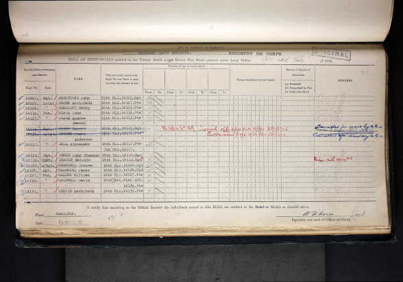 Medal Roll for the award of The Victory Medal and The British War Medal.