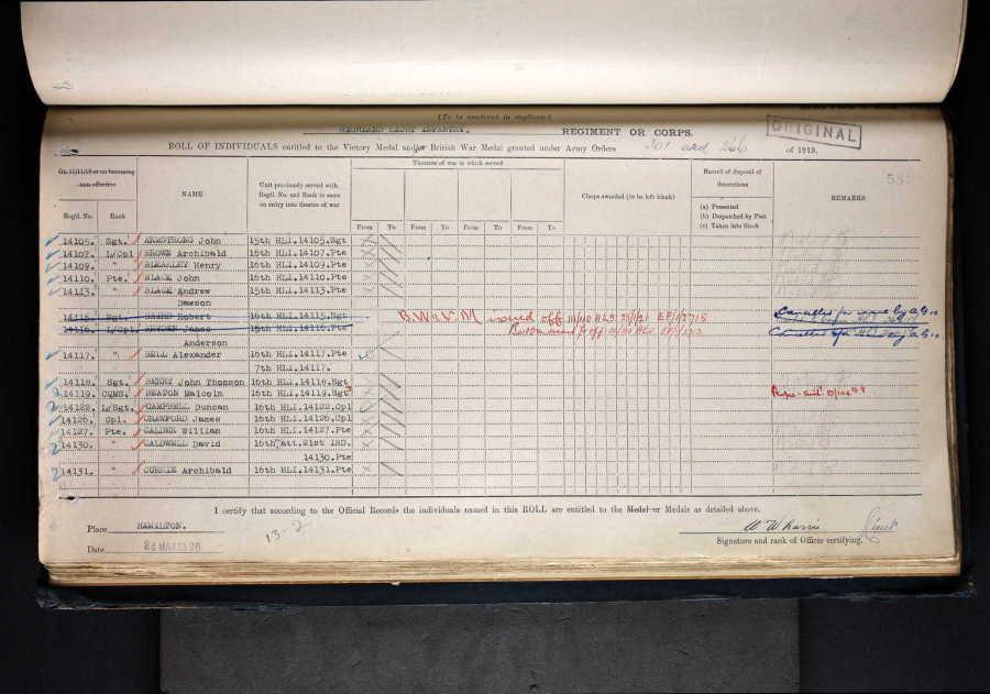 He formerly served with the 16th Battalion, Highland Light Infantry.