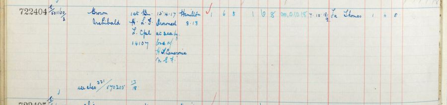 ARCHIBALD BROWN Drowned at Sea on 15th April, 1917, age 25.