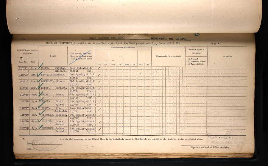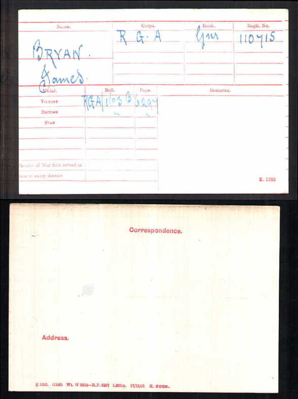 JAMES enlisted on 10 Aug 1916 in Hamilton and joined the Royal Garrison Artillery as Gunner 110715, and served with 258th Siege Battery.