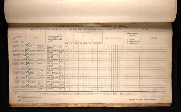 The Medal Rolls Index Card (MIC) for JAMES shows that he was awarded The Victory Medal and The British War Medal.
