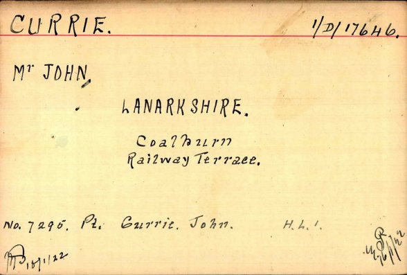 JOHN CURRIE was born at Rosebank, District of Dalserf, on 28 Nov 1895.