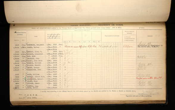 Medal Roll for the award of The Victory Medal and The British War Medal