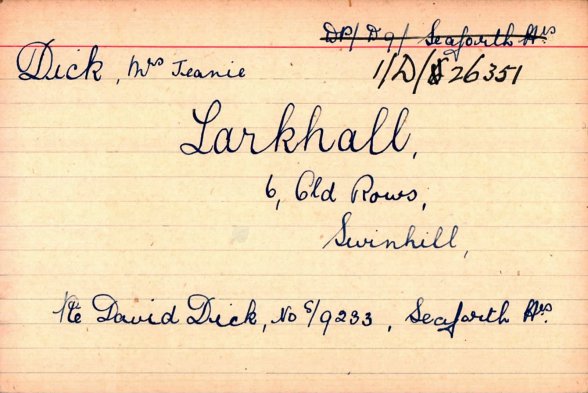 Additional Info: | Son of Charles and Jane Dick of 6 Old Rows, Swinhill, Larkhall, Lanarkshire, Scotland. |