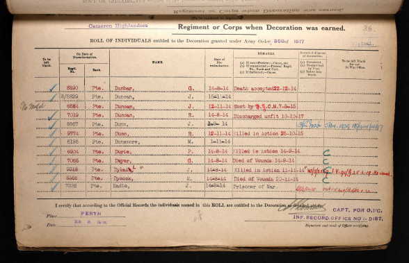 MUNGO DYMOCK, is listed here under the Cameron Highlanders.