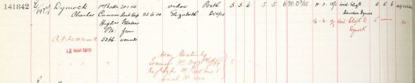 The "Soldier's Effects" record shows that his widow Elizabeth Davidson Dymock received his Outstanding Pay of £5/5/6 and a War Gratuity of £5/-/-.