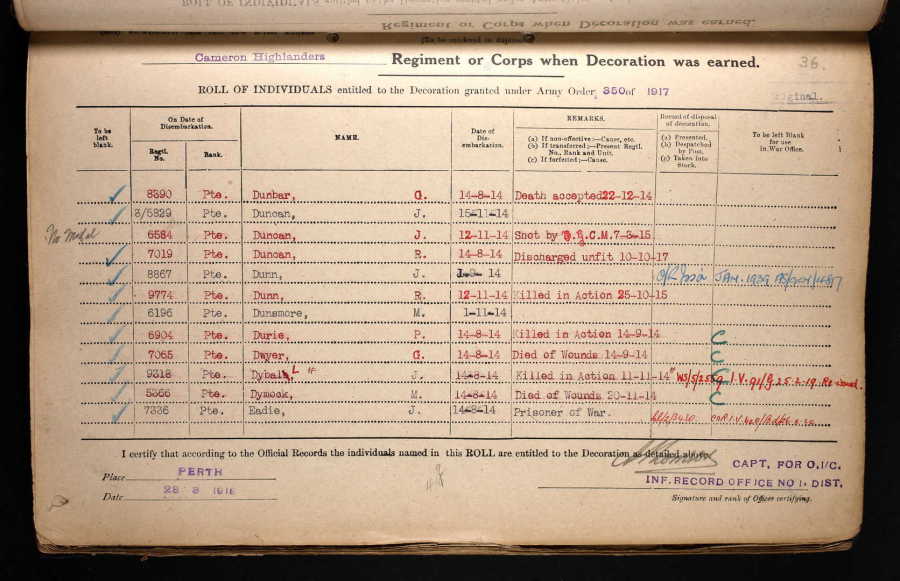 Unit Name: | In or attached to THE QUEEN'S OWN CAMERON HIGHLANDERS |