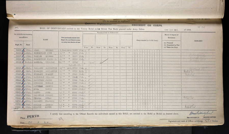 SNWM Roll: | THE QUEEN'S OWN CAMERON HIGHLANDERS |