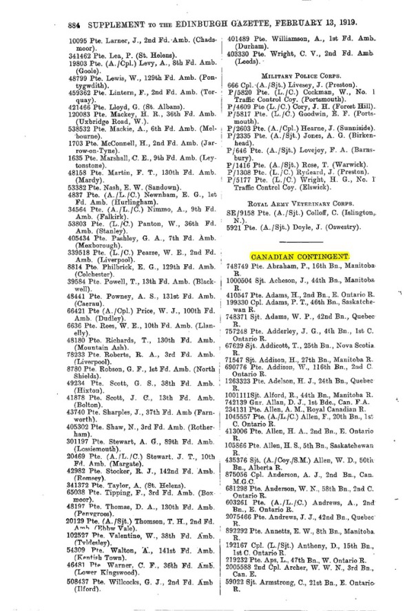 Pages from The Edinburgh Gazette, Number 13402, dated 11th February, 1919.