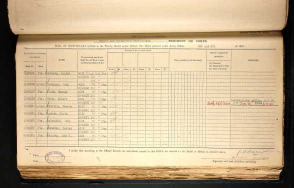 Medal Roll for the award of The Victory Medal and The British War Medal.