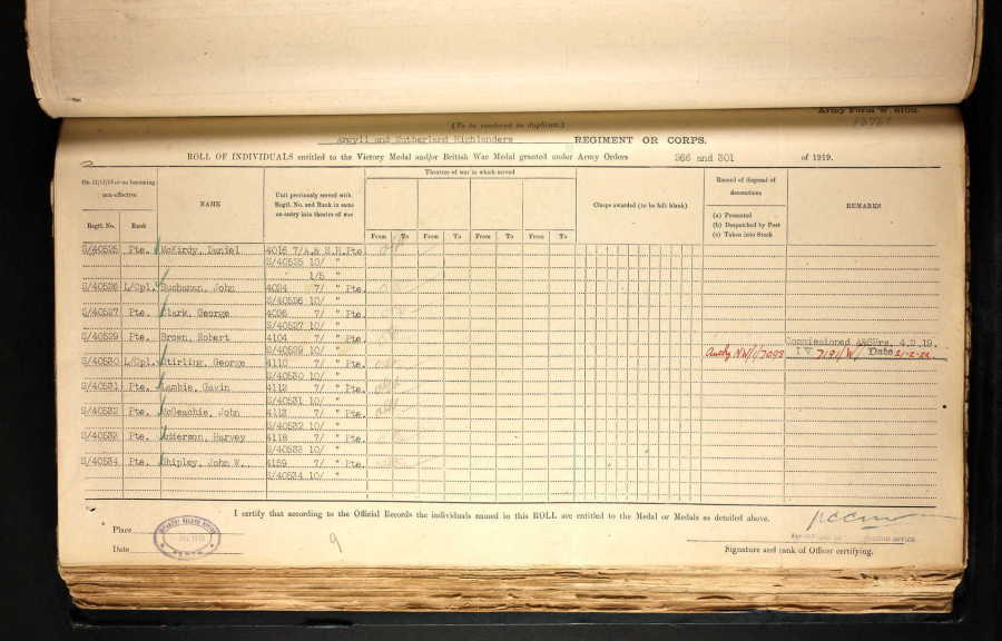 Unit Name: | In or attached to THE ARGYLL AND SUTHERLAND HIGHLANDERS |