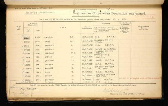 The "Soldier's Effects" record shows that his father John received his Outstanding Pay of £2/9/5, and a War Gratuity of £3/-/-.