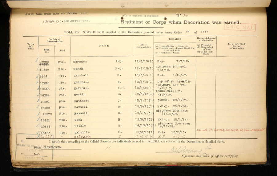 ROBERT joined the 6th Battalion as King's Own Scottish Borderers, and went to France on 12th May, 1915, with his Battalion.