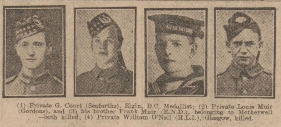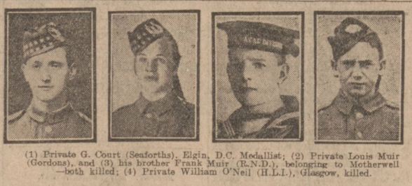 (2) Private Louis Muir (Gordons), and (3) his brother Frank Muir (R.N.D.), belonging to Motherwell - both killed;
