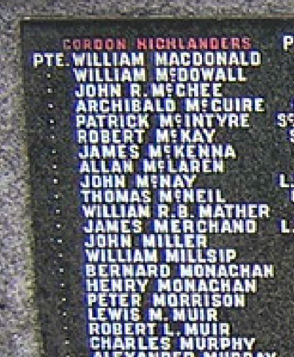 LOUIS McCUTCHEON MUIR, Private S/5253, 8th Battalion, Gordon Highlanders, and his brother FRANCIS MUIR, Able Seaman Clyde Z/4779, Drake Battalion, Royal Naval Division, are NOT named on the Larkhall War Memorial.