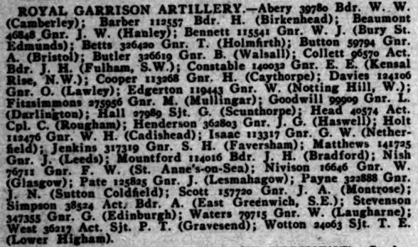 SNWM Roll: | ROYAL GARRISON ARTILLERY |