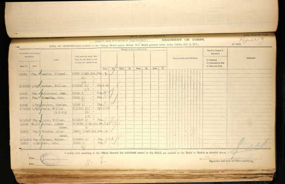 Medal Roll for the award of The Victory Medal and The British War Medal